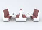 Unlike the Privacy version, this option has no end screen and is designed to run along walls in back-to-back configurations. Both the seating units and tables can either be freestanding or wall-fixed.